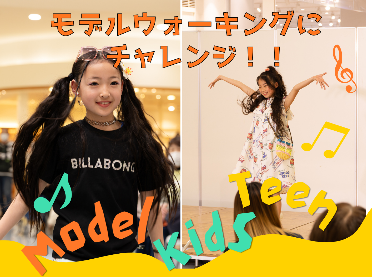 お気に入りの服を着てランウェイに出演できる体験イベントです。 出演には、事前の無料モデル体験レッスンの受講が必須となります。